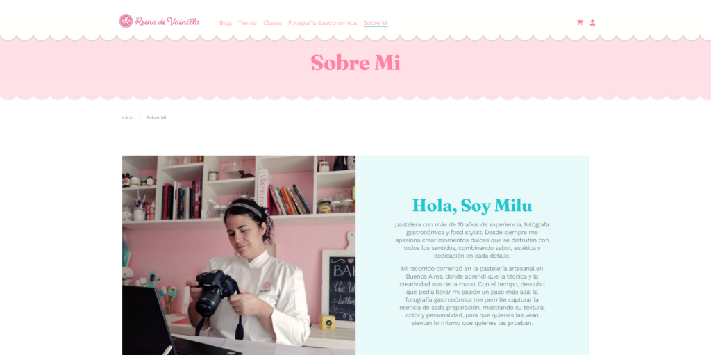 Acá vas a poder ver todos mis productos de pastelería disponibles, las clases y packs de fotografía gastronómica. Al principio va a ser una versión bastante escueta, pero a medida que vaya organizando todo se va a ir completando. Con mis tiempos es un poco complicado volver a los pedidos “on-demand” pero me entusiasma mucho la idea de armar packs para que puedas comprarlos directamente en la tienda en ocasiones especiales. Una novedad son los packs de fotos gastronómicas, algo en lo que me estuve enfocando en los últimos dos años estudiando un montón y practicando otro tanto. Espero poder ayudar a otros emprendimientos gastronómicos a mejorar su imagen online con esta nueva rama de productos de Reina de Vainilla.