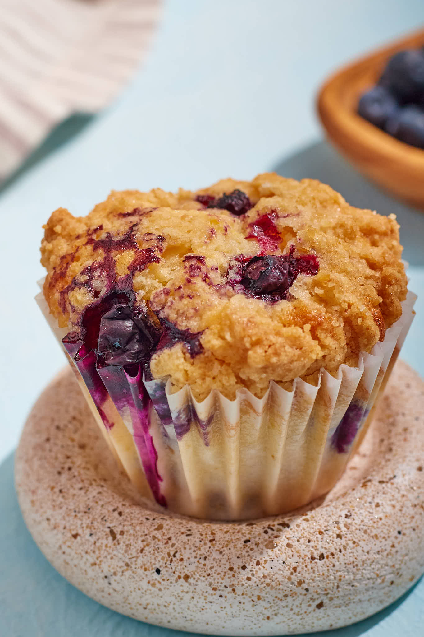 - Podés usar arándanos frescos o congelados, tené en cuenta que si usás congelados pueden largar líquido, lo mejor es colarlos primero y luego usalos, siempre pasándolos por harina para que no se hundan en el fondo de tus muffins.