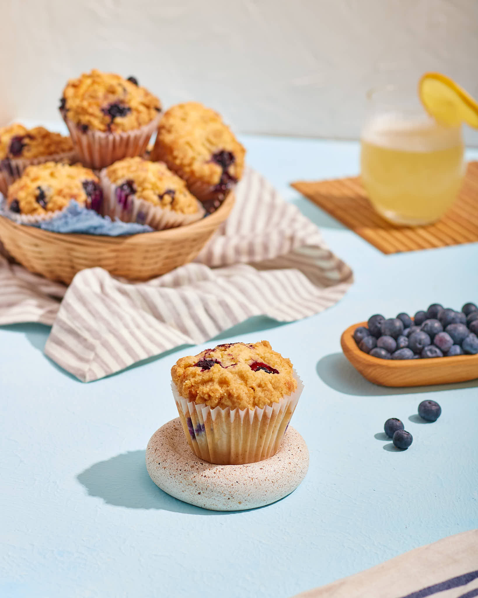 Muffins de arándanos y limón con una estética fresca y luminosa, donde el color y los detalles del topping son protagonistas.Una sesión pensada para transmitir sabor real, producto bien hecho y una identidad visual clara, ideal para marcas que necesitan imágenes que despierten ganas de probar.